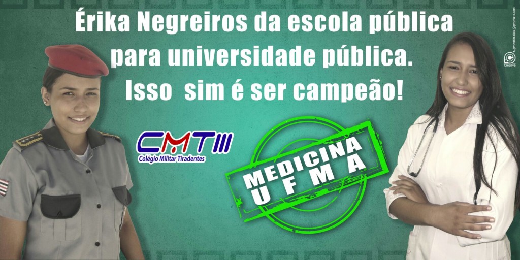 Érika Negreiros estudante do Colegio Militar Tiradentes de Bacabal foi aprovada no vestibular da UFMA para o curso de medicina. Da escola pública para universidade pública.